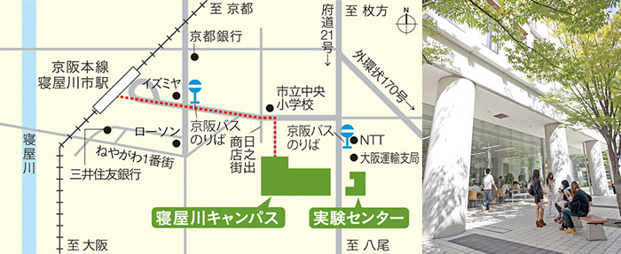 交通アクセス 2024.07.242025.10.20 大阪電気通信大学 寝屋川キャンパス 所在地:〒572-0833 大阪府寝屋川市初町18-1 最寄駅からのアクセス 京阪本線 寝屋川市駅 下車 [急行(快速急行)停車駅] 東口から徒歩7分 アクセスマップ キャンパス内案内マップは準備中 印刷用PDFファイルはこちらから準備中 大阪電気通信大学webサイトのアクセスマップはこちらから